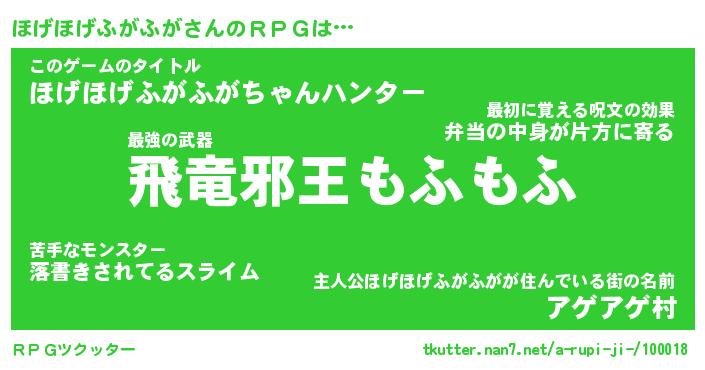 | 男性向けラノベタイトル風あだ名 | 『ホゲホゲフガフガアートオンライン』 |