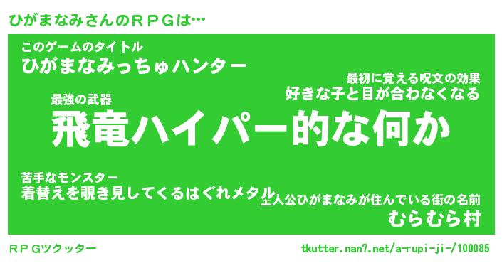 | ファンタジー風あだ名 | 『ヒガフェル』『エターナルヒガマナミー』 |