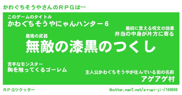 | 男性向けラノベタイトル風あだ名 | 『カワグチソウヤアートオンライン』 |