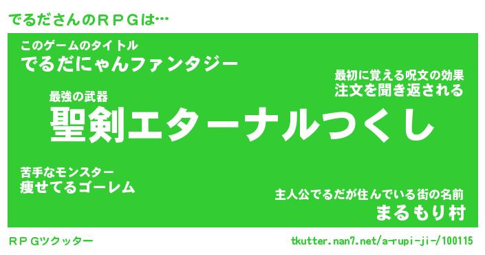 | 男性向けラノベタイトル風あだ名 | 『でるだの憂鬱』 |