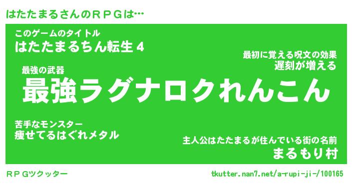 | 男性向けラノベタイトル風あだ名 | 『ハタタマルアートオンライン』 |