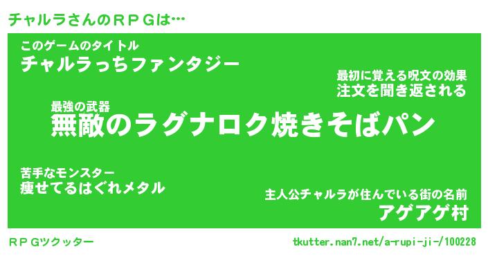 | 男性向けラノベタイトル風あだ名 | 『チャルラアートオンライン』 |
