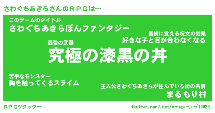 | 男性向けラノベタイトル風あだ名 | 『サワグチアキラアートオンライン』 |