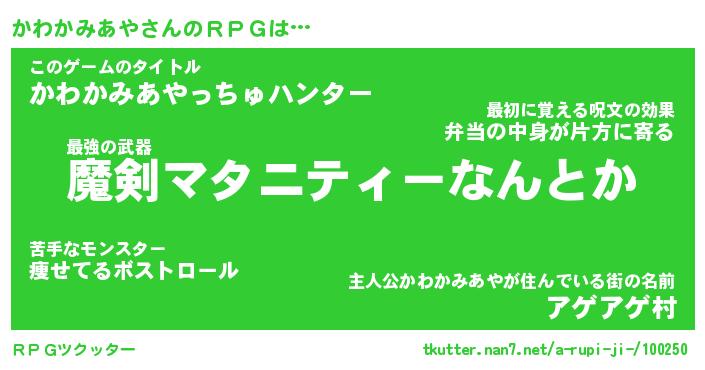 | 肩書あだ名 | 『かわかみあや御曹司』 |