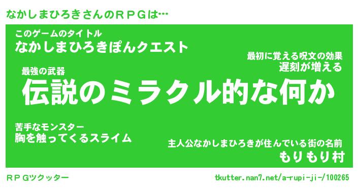 | 伝説のあだ名 | 『不死鳥の竜騎士なかしまひろき』 |