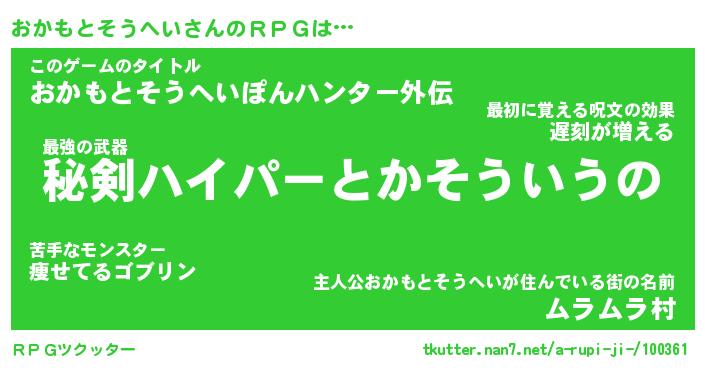 | 伝説のあだ名 | 『伝説の竜騎士おかもとそうへい』 |