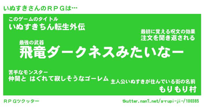 | 伝説のあだ名 | 『封印されし傭兵いぬすき』 |