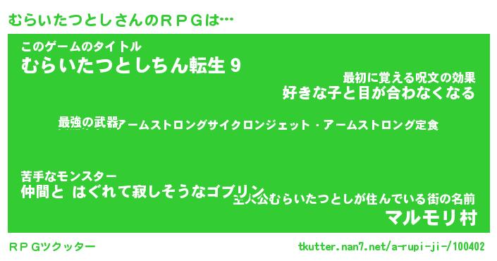 | 男性向けラノベタイトル風あだ名 | 『ムライタツトシアートオンライン』 |