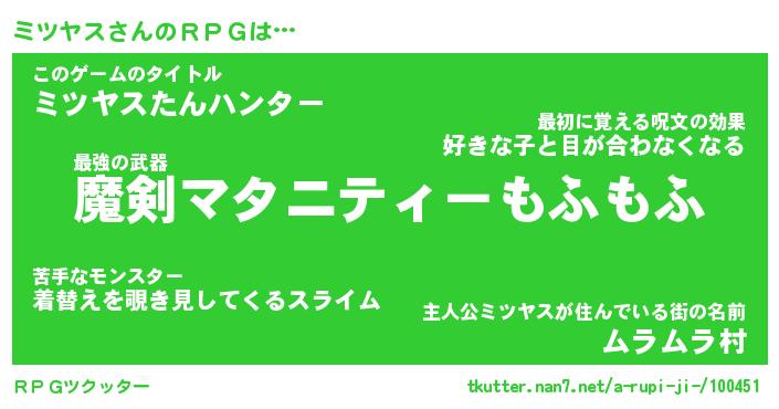 | ファンタジー風あだ名 | 『ミツフェル』『エターナルミツヤスー』 |