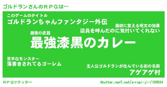 | 料理風あだ名 | 『節約★ゴルドランと油揚げの玉子丼』 |