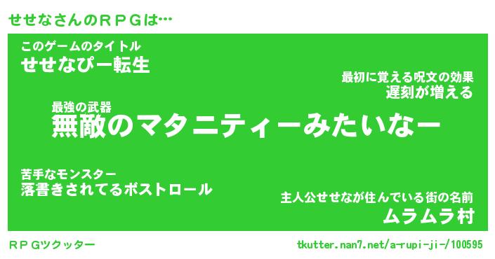 | 伝説のあだ名 | 『封印されしスナイパーせせな』 |