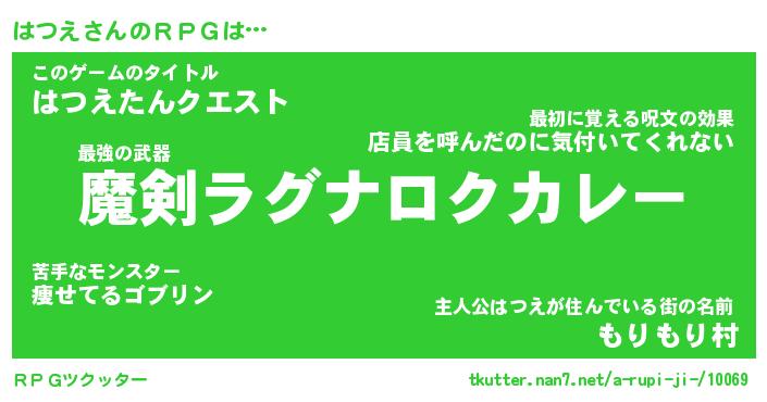 | 男性向けラノベタイトル風あだ名 | 『はつえの憂鬱』 |