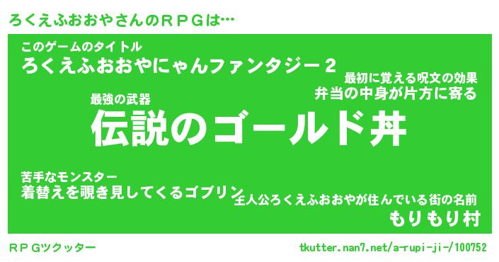 | 男性向けラノベタイトル風あだ名 | 『ろくえふおおやの憂鬱』 |