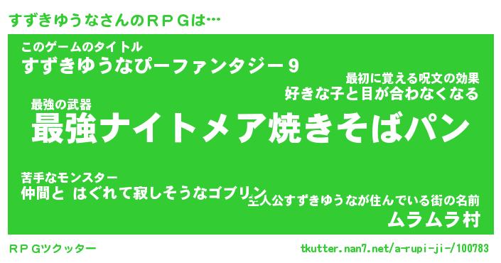 | ヒーロー風カッコイイあだ名 | 『スーパースズキユウナ』『暗黒騎士スズ』 |