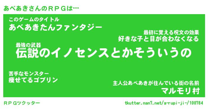 | 男性向けラノベタイトル風あだ名 | 『あべあきの憂鬱』 |