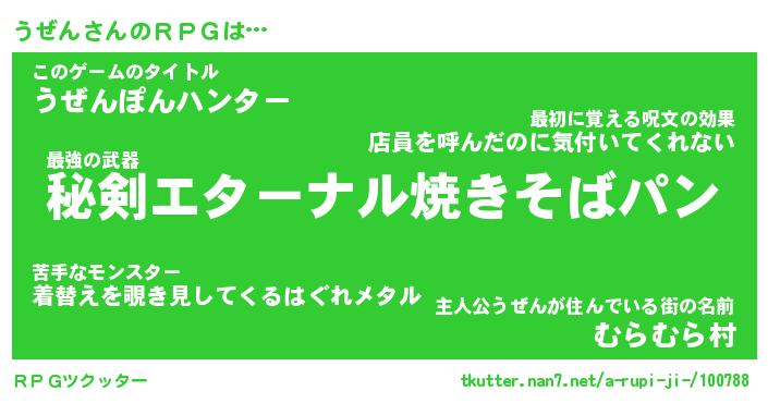 | ファンタジー風あだ名 | 『ウゼフェル』『エターナルウゼンー』 |