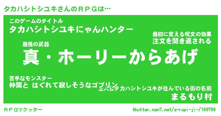 | 男性向けラノベタイトル風あだ名 | 『タカハシトシユキアートオンライン』 |