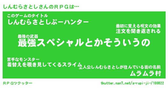 | 男性向けラノベタイトル風あだ名 | 『シンムラサトシアートオンライン』 |