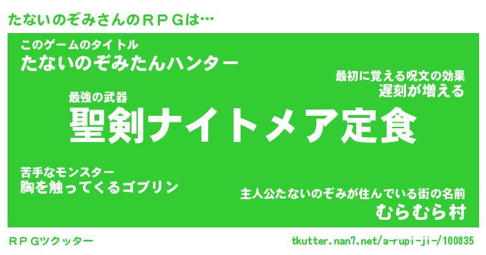 | 胡散臭い通販商品みたいなあだ名 | 『必ず成功する霊験あらたかなお札…その名も「たないのぞみ」』 |