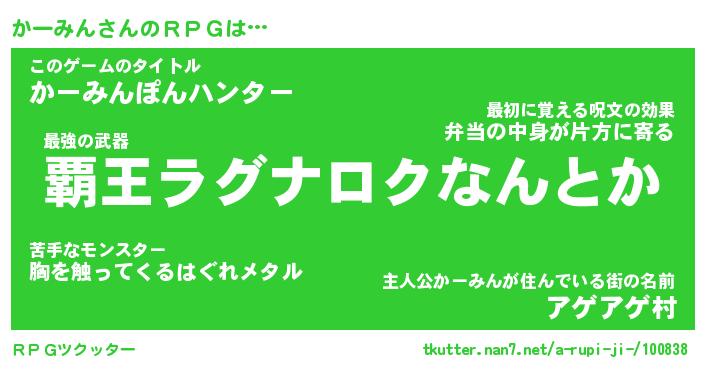 | 伝説のあだ名 | 『封印されし竜騎士かーみん』 |