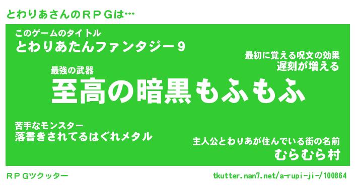 | ヒーロー風カッコイイあだ名 | 『スーパートワリア』『幻影騎士トワ』 |
