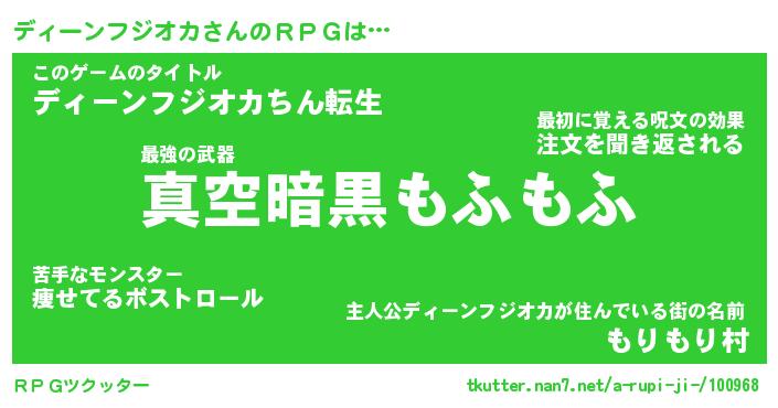 | 男性向けラノベタイトル風あだ名 | 『ディーンフジオカアートオンライン』 |