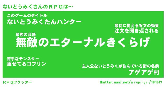 | 男性向けラノベタイトル風あだ名 | 『ナイトウミクアートオンライン』 |