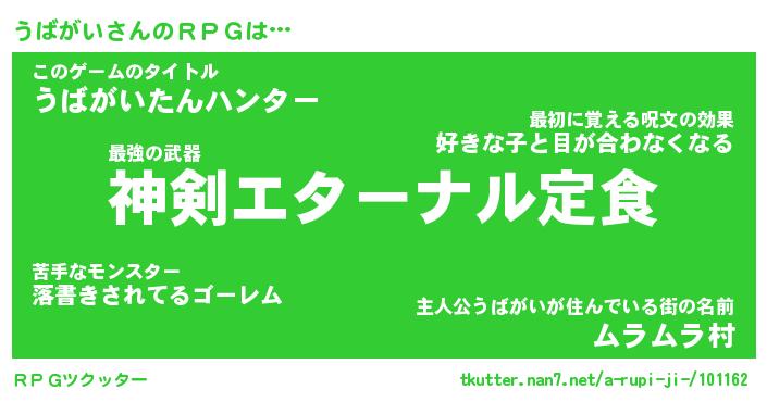 | 男性向けラノベタイトル風あだ名 | 『うばがいの憂鬱』 |