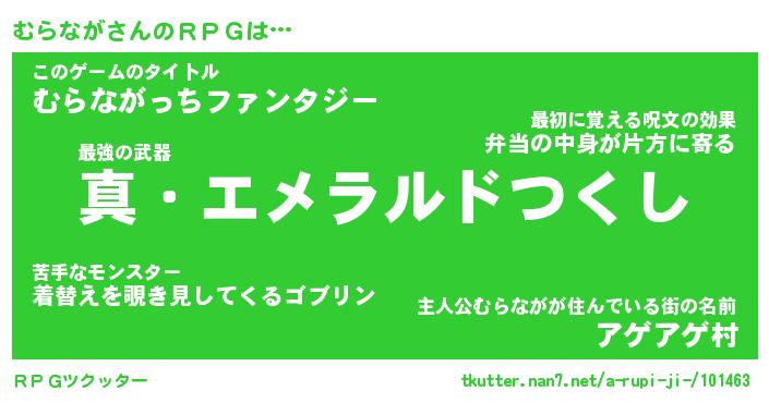 | 男性向けラノベタイトル風あだ名 | 『ムラナガアートオンライン』 |