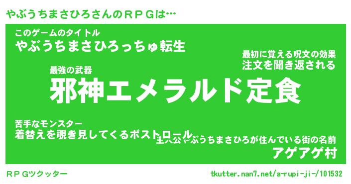 | 胡散臭い通販商品みたいなあだ名 | 『億万長者になれる霊験あらたかなお札…その名も「やぶうちまさひろ」』 |