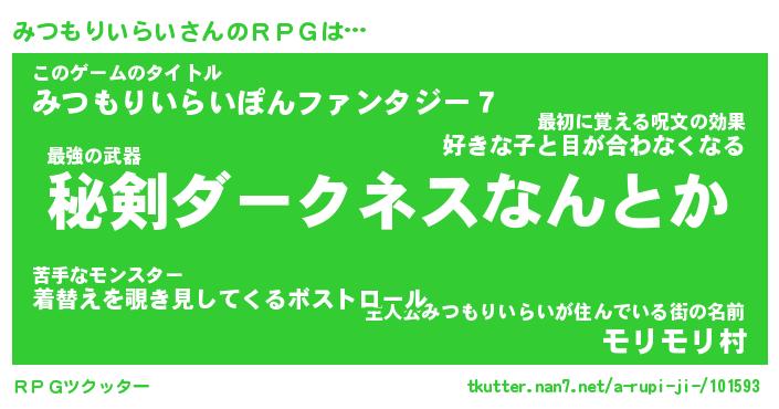 | 男性向けラノベタイトル風あだ名 | 『みつもりいらいの憂鬱』 |
