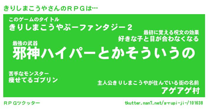 | 胡散臭い通販商品みたいなあだ名 | 『億万長者になれるブレスレット…その名も「きりしまこうや」』 |