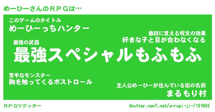 | ファンタジー風あだ名 | 『メーフェル』『エターナルメーヒーー』 |