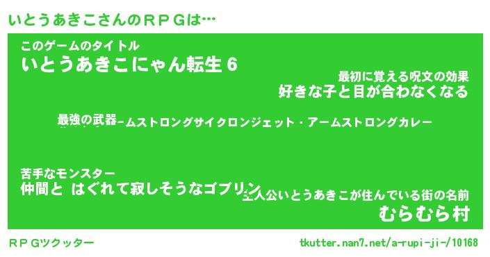 | 男性向けラノベタイトル風あだ名 | 『イトウアキコアートオンライン』 |
