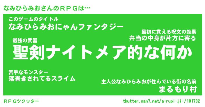 | 胡散臭い通販商品みたいなあだ名 | 『必ず成功する霊験あらたかなお札…その名も「なみひらみお」』 |
