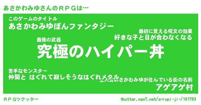| 肩書あだ名 | 『あさかわみゆ社長』『あさかわみゆ助手』 |