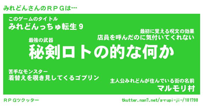 | 男性向けラノベタイトル風あだ名 | 『みれどんの憂鬱』 |