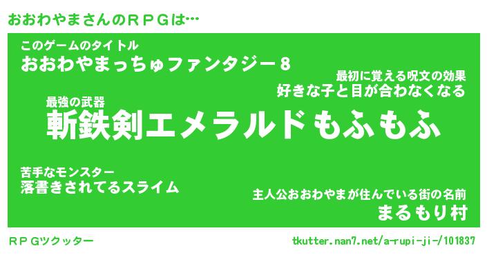 | ファンタジー風あだ名 | 『オオフェル』『エターナルオオワヤマー』 |