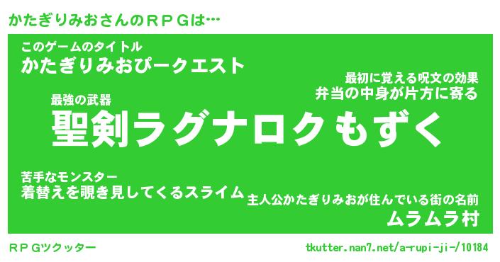 | 伝説のあだ名 | 『伝説の竜騎士かたぎりみお』 |