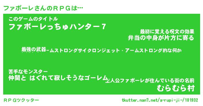 | 男性向けラノベタイトル風あだ名 | 『ファボーレの憂鬱』 |