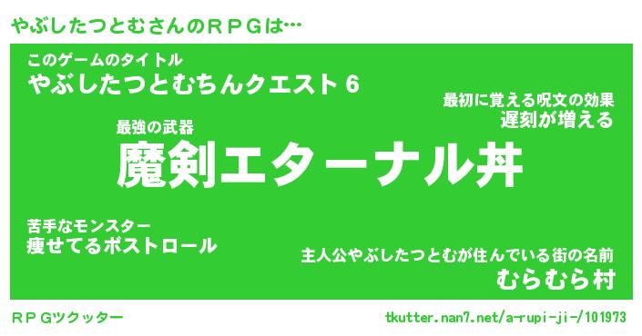 | 伝説のあだ名 | 『伝説の傭兵やぶしたつとむ』 |