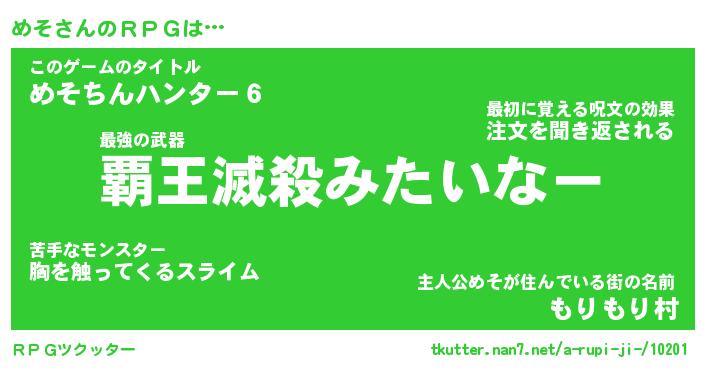 | 男性向けラノベタイトル風あだ名 | 『メソアートオンライン』 |