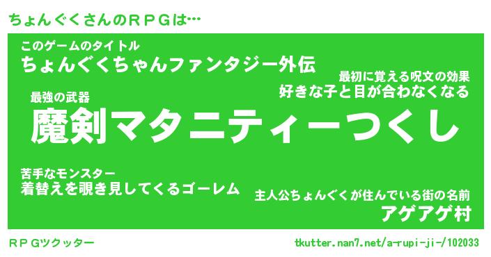 | 男性向けラノベタイトル風あだ名 | 『ちょんぐくの憂鬱』 |