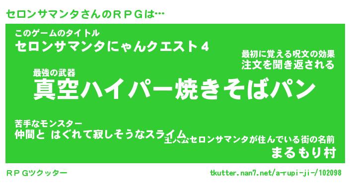 | 伝説のあだ名 | 『封印されし竜騎士セロンサマンタ』 |