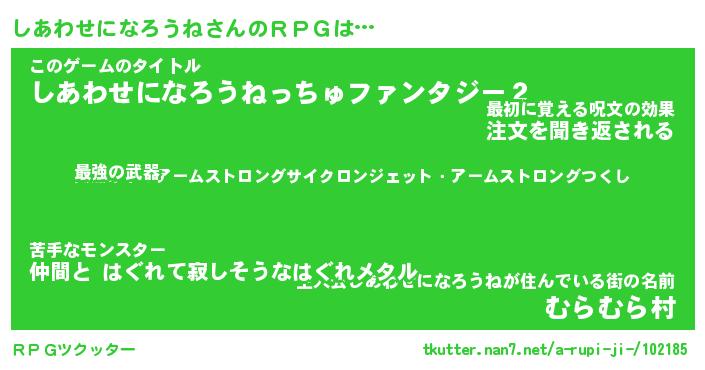 | 男性向けラノベタイトル風あだ名 | 『シアワセニナロウネアートオンライン』 |
