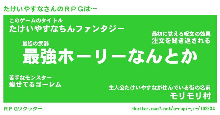 | 男性向けラノベタイトル風あだ名 | 『タケイヤスナアートオンライン』 |