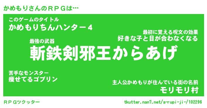 | ファンタジー風あだ名 | 『カメフェル』『エターナルカメモリー』 |