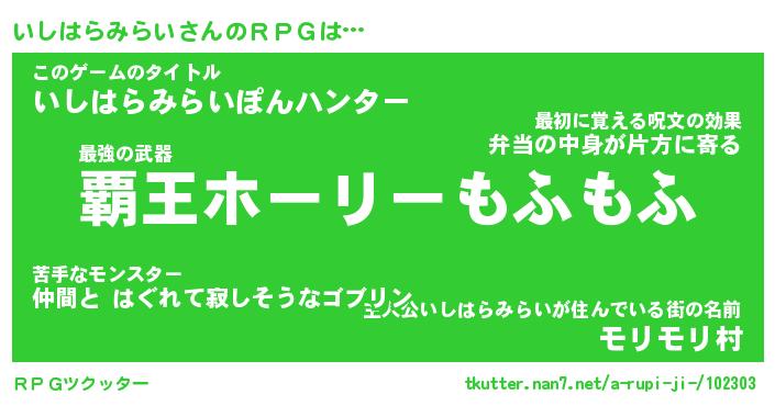 | 胡散臭い通販商品みたいなあだ名 | 『億万長者になれる水晶球…その名も「いしはらみらい」』 |
