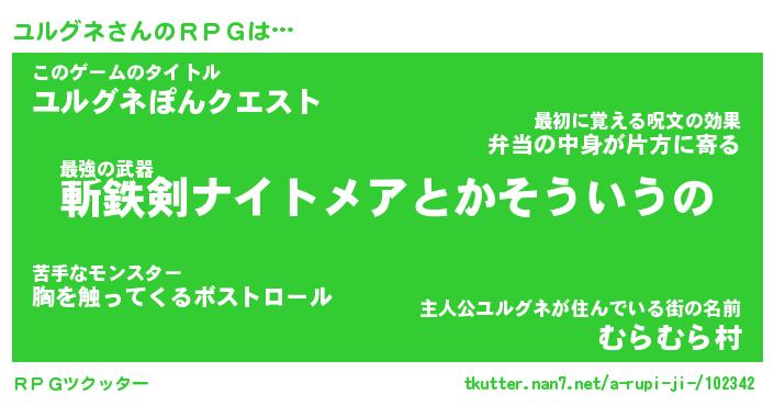 | 胡散臭い通販商品みたいなあだ名 | 『必ず成功する霊験あらたかなお札…その名も「ユルグネ」』 |