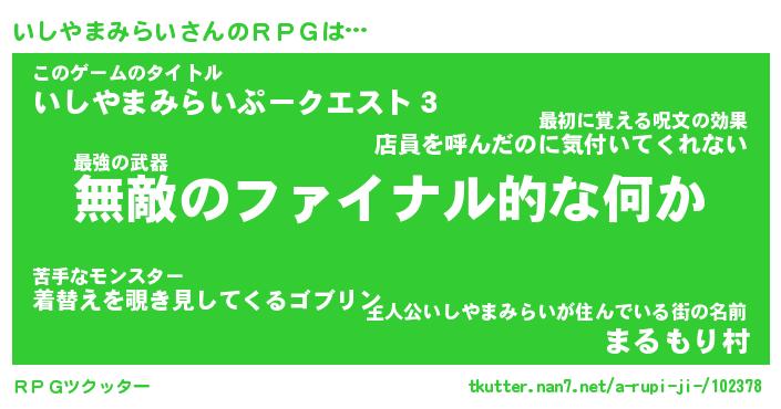 | 男性向けラノベタイトル風あだ名 | 『イシヤマミライアートオンライン』 |
